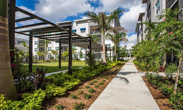Working with our Client, City of West Palm Beach planning staff, and the surrounding single-family communities, the Cottonwood complex was designed to cluster the buildings around a central courtyard and pool amenity area, provide green spaces for residents and connect to a small commercial plaza located adjacent to the site.